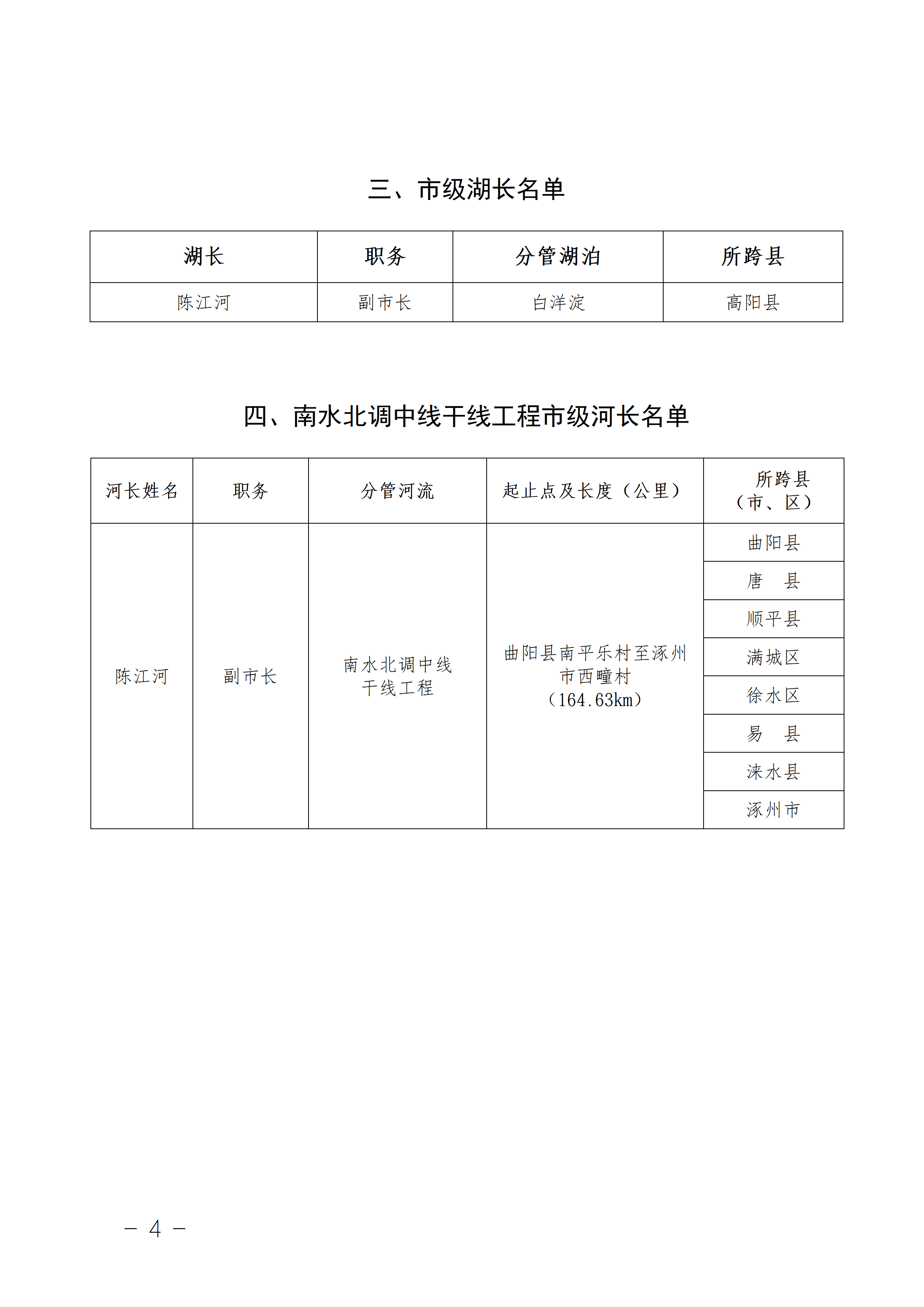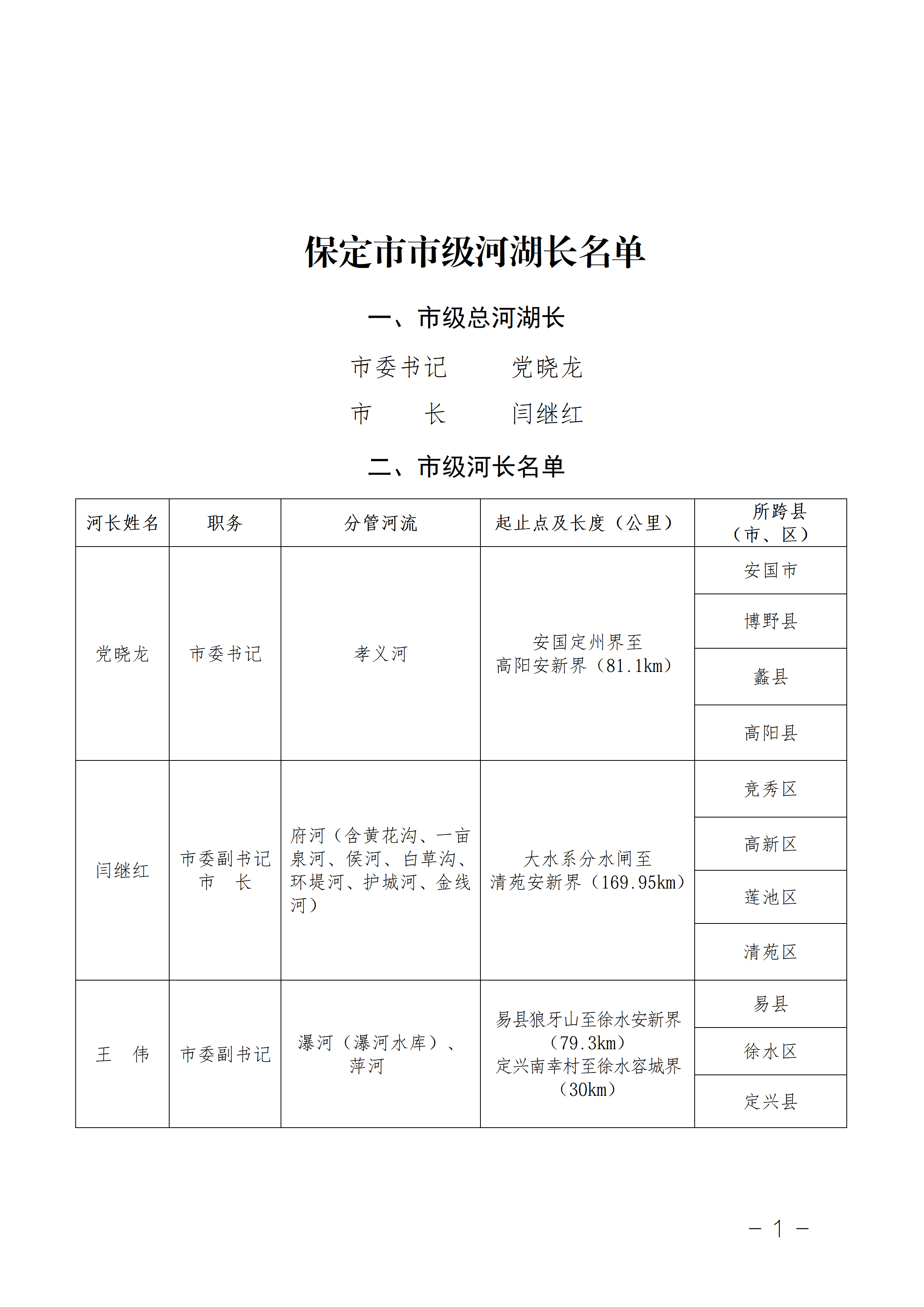 因市级领导干部调整,现将调整后的市级河长名单公告如下: