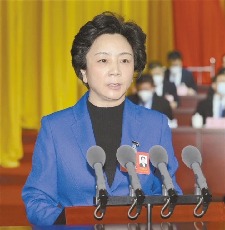 闫继红作政府工作报告。 保定新闻传媒中心 刘琦 摄
