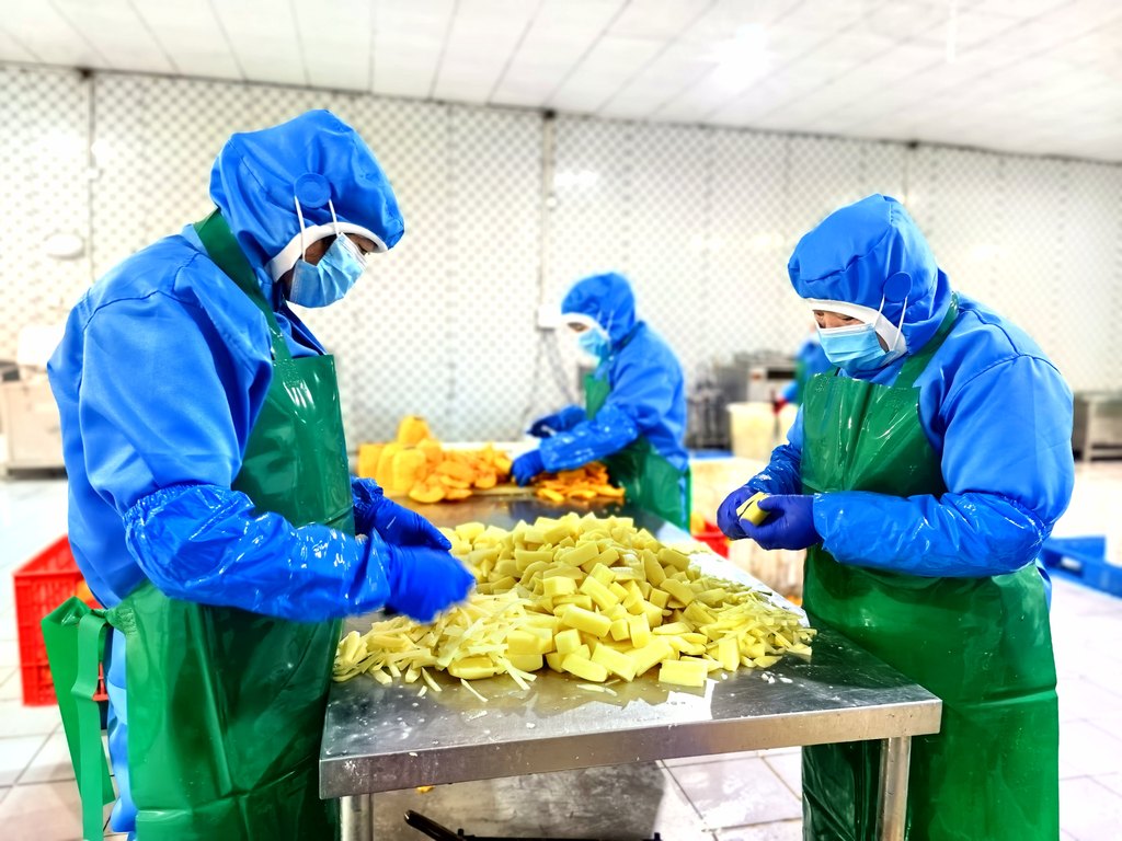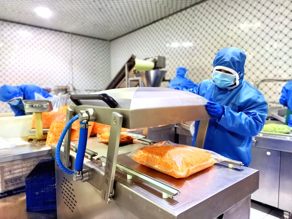 “客户每天下午4点前下订单,加工车间按照订单数加工,第二天早晨8点前,净菜就能送到客户手里,从田间到送上飞机不超过24小时。”中农农业总经理孙世杰说,他们合作的客户以航空公司为主,其中包括国航、东航等。 不同于普通餐饮,航空配餐食材对安全性、新鲜度、稳定性有着极为严格的要求。“河北净菜”飞上蓝天,这条路走得并不平坦。 孙世杰曾在北京打拼多年。2017年,他看准净菜行业的发展前景,返乡创业成立中农农业,主营食堂食材配送。 一次偶然的机会,在一场行业交流会上,孙世杰得知北京多家航空配餐企业正寻找高品质净菜供应商。当时,民航业对飞机餐食材的安全标准不断升级,普通净菜供应商因达不到要求被挡在门外,市场出现缺口。 “这既是挑战,更是机遇!”孙世杰敏锐地意识到,航空食材市场虽然门槛高,但是一旦站稳脚跟,不仅前景广阔,还能带动家乡的农产品打出名气。 那一刻,他下定决心,一定要让家乡的净菜飞上蓝天。 出发!孙世杰带着自家净菜样品,上门对接北京多家航空配餐企业。然而,航空食材市场的门槛,比他想象得高很多。 “农药残留精确到微克级别,确保食材可食率达95%以上,有完整的产销记录……”对方拿出标准单说,“你们的基础不错,但离航空标准还有差距。” 碰壁后,孙世杰没有气馁,他把对方给出的标准逐条记下。“标准再严,只要一点点攻克,总能达到。”他说。 于是,孙世杰开启了一场“标准化革命”。最难的关卡,就是净菜的保鲜。 “蔬菜在加工过程中,经常会遇到一系列色变挑战。”孙世杰举例说,土豆加工时暴露在空气里会褐变,萝卜芯可能会变蓝,山药容易变黄。一旦发生色变,就有可能导致整批货物被退回,损失可不是小数目。 土豆是航空餐里的常用食材,需求量大,它切分时产生的机械伤会引发氧化褐变,不光卖相难看,还容易滋生微生物,导致营养流失。 怎么解决土豆褐变这个问题呢?孙世杰把功夫下在了规范加工流程的每一个细节里。 在净菜加工车间,等待切分的土豆会被放置在一个水池里浸泡。池水水温低于10℃,能够抑制氧化酶活性,延缓褐变,保持土豆的新鲜度和口感。 除了浸泡在清水中保鲜,更关键的是抢时间。“土豆切分后十几分钟就会氧化,必须争分夺秒加工。”孙世杰说,工人们练出了“快手功夫”,土豆切好后,立刻进入清洗、甩干环节,然后进行真空包装,彻底隔绝空气防止色变。