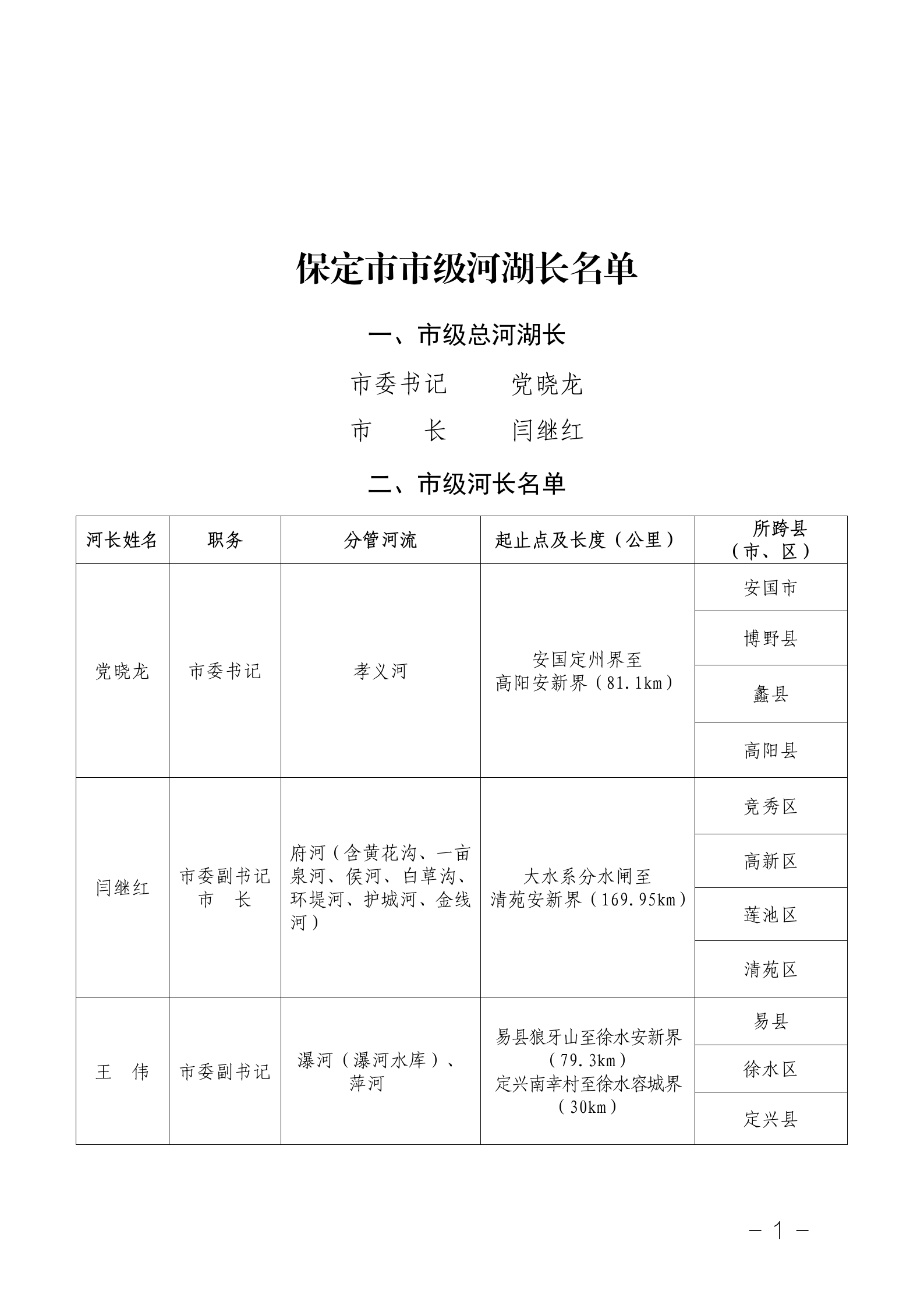因市级领导干部调整,现将调整后的市级河长名单公告如下:
