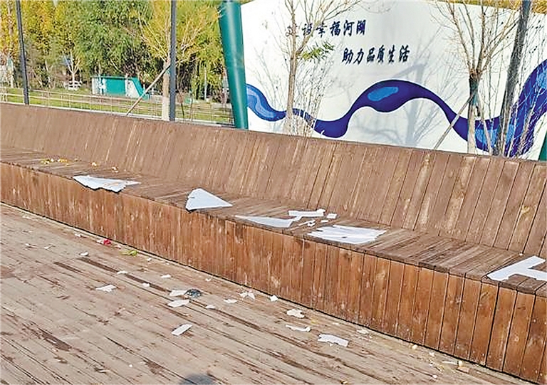 竞秀区北二环与阳光北大街交口西南120米,北湖公园观景台上垃圾较多,希望游客能文明游览,随手将垃圾清理干净。 马女士 摄