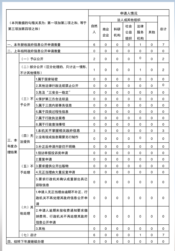 (二)规范办理依申请公开。严格按照法定时限和程序,规范办理依申请公开工作,建立健全登记、审核、办理、答复、归档的闭环管理机制。2025年共收到申请7件(纸质信函5件,网络申请2件),较去年同期增加5件,被申请行政复议0件,行政诉讼0件。其中,同意公开2件,部分公开2件,不予公开3件。在办理过程中,注重与申请人的沟通解释,有效化解了行政争议。