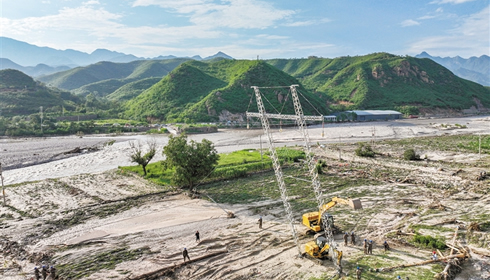国网涞水县供电公司在拒马河畔组建临时塔,紧急恢复35千伏三镇线正常供电。 崔广尚 摄 □保定日报记者 邸志永 孟 丽 李忻遥 孟趁景 张 洁 “七下八上”防汛关键期,保定大地经受严峻考验!暴雨如注,历史罕见,水淹城困,汛情紧急! 当滚滚洪水袭来,总有一面红色的旗帜在防汛抗洪救灾一线高高飘扬。 当人民面对危难艰险,总有一双坚实的臂膀,托起生命之舟的希望。 当一方有难时,总有一种昼夜兼程、八方支援的力量,展现人间有爱,全国同心,风雨共担。 当淤泥砂石覆盖城乡,总有勤劳的双手,用昼夜不停地奋战,开垦出无限的希望。 保定,面对历史空前强降雨导致的严重汛情,在以习近平同志为核心的党中央坚强领导下,在国务院科学决策部署下,坚决落实省委、省政府要求,广大党员干部挺身而出,带领着千千万万的人民群众,上下团结一心,为了保卫家园更为了共建更加美好的家园,不断拼搏,奋勇向前。 最强降雨来袭 1951年有连续观测记录以来最强降水过程,保定连发72期预警为全市部署防汛工作留足“提前量” 一如1963年强降雨跟台风有关,本次降雨受台风“杜苏芮”影响。 7月29日08时至8月2日08时,我市全区出现特大暴雨,平均降水量357.2毫米。 在全年平均降雨量500毫米左右的保定,这场能被千万古城人牢记的降雨引发的洪水,在8月12日被水利部命名为:海河“23.7”流域性特大洪水。 根据2021年5月水利部印发的《全国流域性洪水划分规定(试行)》,流域性洪水分为三个等级,分别为流域性特大洪水、流域性大洪水和流域性较大洪水。 下面这组数字,极为震撼! 本轮强降雨,4天日平均降水量达到88毫米。此前古城人记忆深刻的“63.8”降雨,7天日平均降水量为72毫米。 更甚的是,本轮强降雨,250毫米(特大暴雨)以上降水面积覆盖全区;此前的“63.8”“96.8”“12.7”“16.7”等特大暴雨过程,影响区域最高不过80%。 此外,特大暴雨中心多也是此轮强降雨一大特点。全市共349个站点,有290个站点出现特大暴雨。其中降雨量超过600毫米的有10个,最大降水量易县紫荆关752.7毫米,主城区最大极值为竞秀区江城乡642.5毫米,单日最大降水量阜平县辽道背491.7毫米,超过了此前保定400.8毫米的历史记录。 累计雨量大、覆盖范围广、持续时间长、降水强度大……综上所述,本次降水过程为有连续观测记录以来(1951年)最强降水过程。 强降雨之下,紧急险情接踵而至。 8月1日凌晨2时,大清河发生特大洪水,涿州西部北拒马河上游张坊水文站最大洪峰流量达到6200立方米/秒,为有实测资料以来第二位,远超北拒马河涿州段660立方米/秒的标准洪水行洪能力。涿州北部琉璃河上游漫水河水文站洪峰流量达到3700立方米/秒,远超琉璃河750立方米/秒的标准洪水行洪能力。 大量洪水从涿州市西部、北部涌入,尤其是两股洪水汇入白沟河,远超出其2000立方米/秒的标准洪水行洪能力,汛情形势异常复杂。 全市10座大中型水库全部超汛限水位,83座小型水库有67座溢流。4座大型水库中,安格庄水库超汛限水位9.5米。 保定22个县(市、区)全部遭受洪涝灾害,285个乡镇受灾,紧急避险转移人口51.8万人,紧急转移安置人口54.6万人。 人民群众生命财产安全受到严重威胁。 怎样面对历史罕见强降雨,怎样应对暴雨带来的特大洪水,更能体现一座城市的成长与进阶,韧性和管理。 凡事预则立,不预则废。如何在狂风暴雨中抢得先机,为人民的生命财产安全保驾护航? 深入贯彻落实习近平总书记关于防汛救灾工作和气象工作重要指示精神,全面落实省委、省政府和市委、市政府决策部署,7月29日至8月5日,我市气象部门与有关部门联合会商33次,市县联合发布主城区内涝风险等级预报10期、山洪灾害气象预警28期、中小河流洪水气象风险等级预报12期、地质灾害气象风险预警22期,各类预警总共72期。此外,县区气象局及时“叫应”县级和乡镇领导734次,为全市部署防汛工作和转移高风险区域人员留足“提前量”。 坚持人民至上、生命至上,严阵以待的保定全力迎战! 责任重于泰山 党中央、国务院坚强领导,国家部委紧急驰援,省市领导一线指挥,科学调度打赢防汛救灾和灾后恢复重建主动仗 河北省和保定市的汛情灾情,深深牵动着党中央、国务院的心。 习近平总书记极为牵挂河北灾情,他详细了解涿州等地水位情况,责成河北省调集力量,及时转移受困人员,做好城区排涝,尽快恢复城市正常运行秩序。 8月1日,习近平总书记再次作出重要指示,强调“各地要全力搜救失联、被困人员,尽最大限度减少人员伤亡”“山区涝汛风险大的地方要应撤尽撤,不漏一户”“中断联系的村子要尽快全部联系上”“基层党组织要发挥作用,让人民群众感到有依靠”。 中共中央政治局常委、国务院总理李强作出批示,就认真贯彻落实习近平总书记重要指示精神、做好防汛救灾工作、落实落细各项防汛防台措施、切实保障人民群众生命财产安全提出具体要求。 灾情发生以来,党中央、国务院坚强领导,中共中央政治局委员、国务院副总理张国清、刘国中先后到保定指导抢险救灾、生产恢复等工作。国家防总、国家发改委、应急管理部、水利部、住房城乡建设部、商务部、国家金融监督管理总局等国家部委紧急驰援,省委、省政府统筹部署。 省委书记倪岳峰、省长王正谱连续多次赶赴我市受灾地区,与保定干部群众并肩作战,为全市深入细致