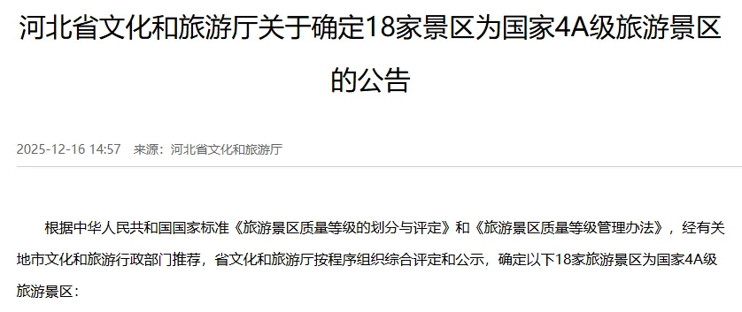 | 景区强基焕新,国家4A级旅游景区保定+2! |