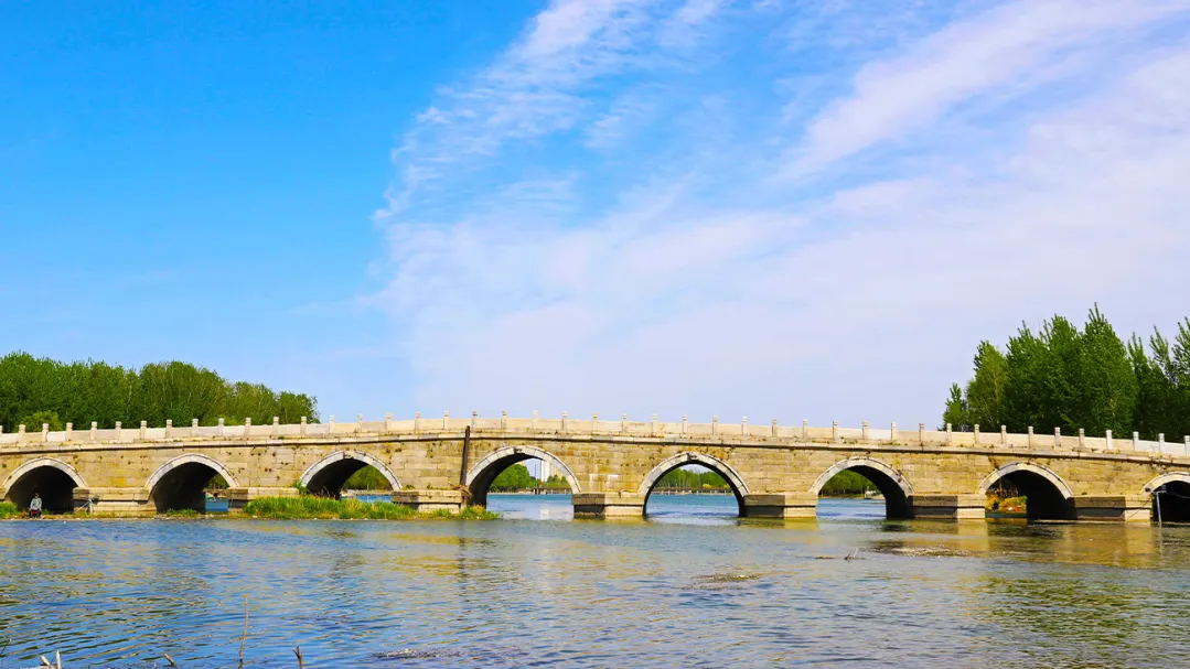 游客可着汉服听典故、参与古法美食制作、研学烹饪实训课程、夜间观看“靴城不夜城”光影秀,是安放乡愁、感知古城的文化地标。 永济桥景区位于涿州城北1.5公里处,横跨拒马河,为涿州新十景之一“拒马长虹”,兼具历史文化与自然风光。其核心景观永济桥始建于明万历二年(1574年),清乾隆二十五年(1760年)重建,乾隆帝赐名“永济”,该桥全长627.65米,是中国第一长石拱桥,桥身以长方巨石砌成,栏雕精美,是全国重点文物保护单位。