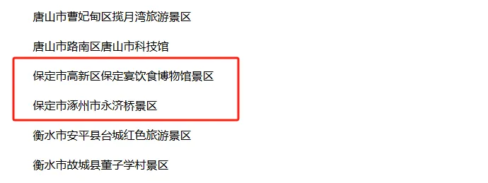 12月16日,省文旅厅发布公告,我市高新区保定宴饮食博物馆景区、涿州市永济桥景区获评国家4A级旅游景区,至此,全市国家4A级旅游景区数量达到18家。