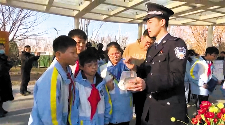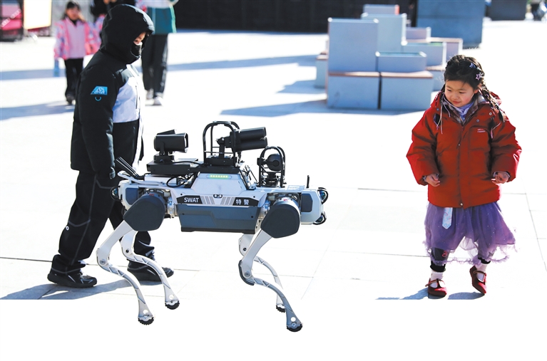 ①竞秀区公安分局警用机器狗吸引小朋友目光。