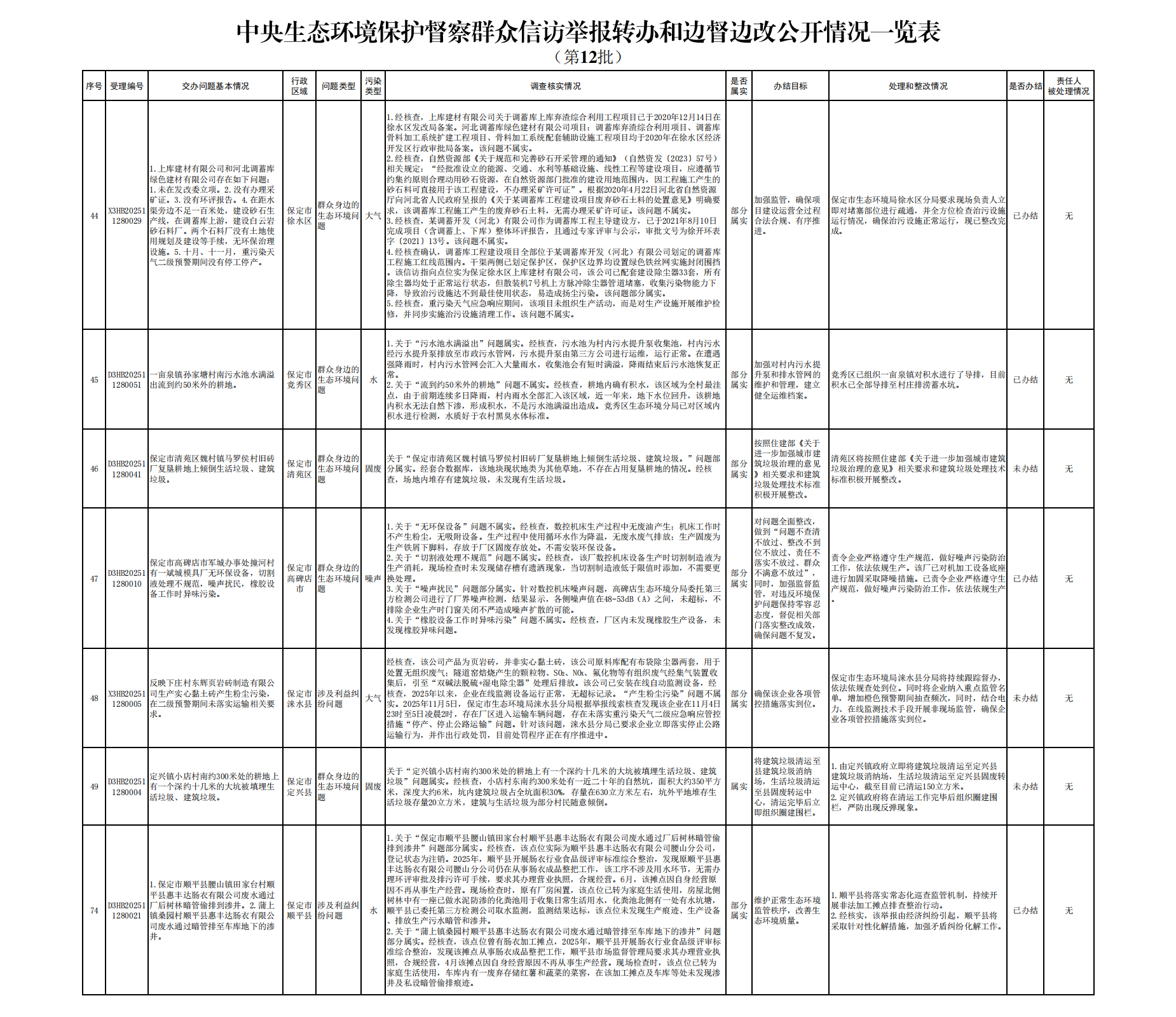 | 中央生态环境保护督察组交办保定市第十二批群众信访举报案件办理情况 |