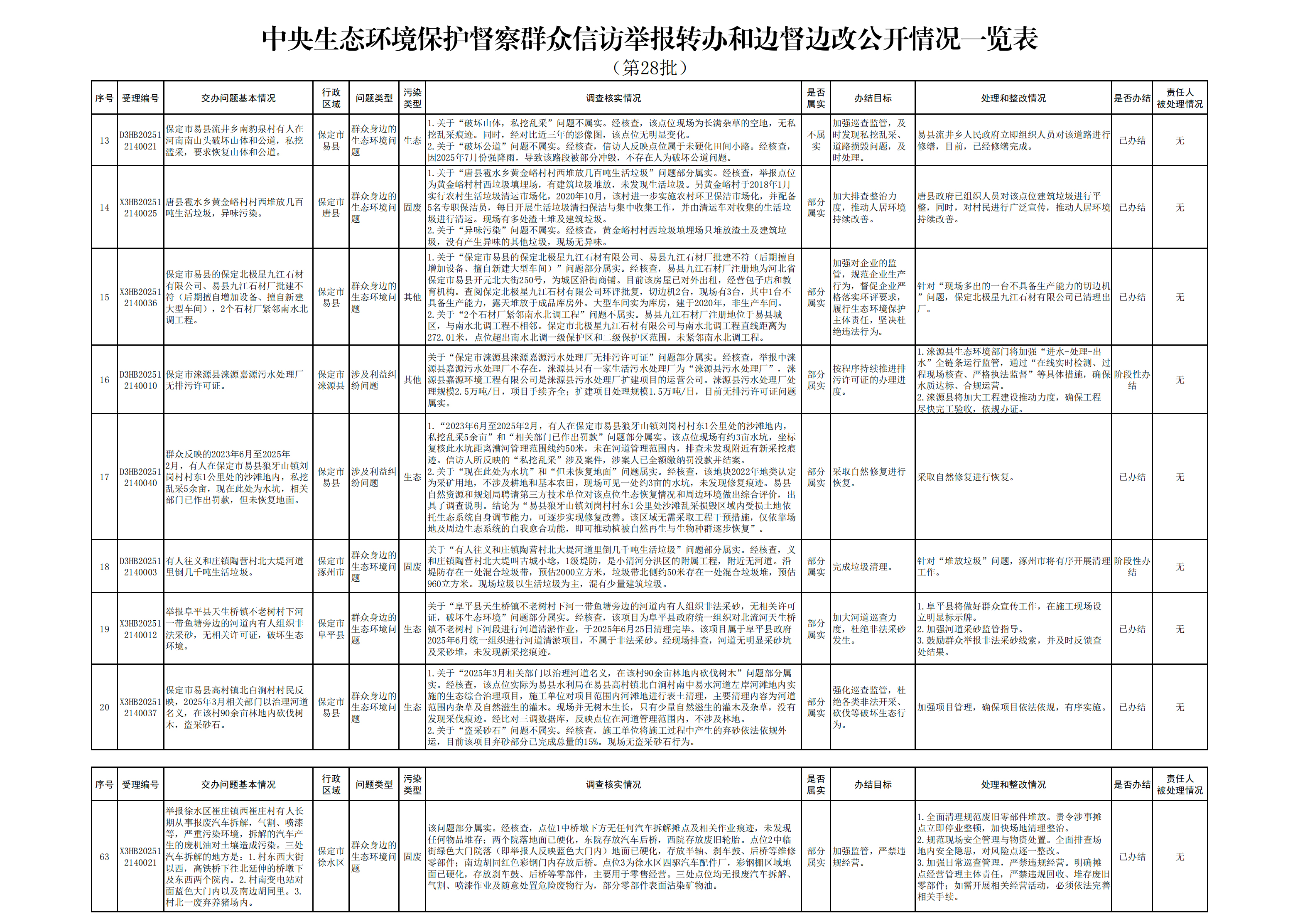 | 中央生态环境保护督察组交办保定市第二十八批群众信访举报案件办理情况 |