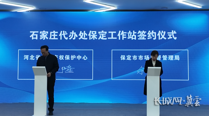 河北省知识产权保护中心与保定市市场监管局(知识产权局)签订专利代办处工作站委托协议。长城网·冀云客户端 赵鹏伟 摄