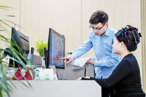 3月31日,高阳新高点设计工作室,设计师进行毛巾图案创意设计。