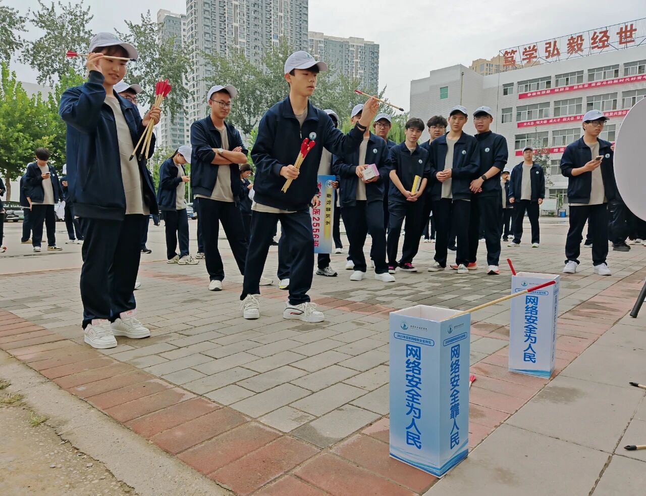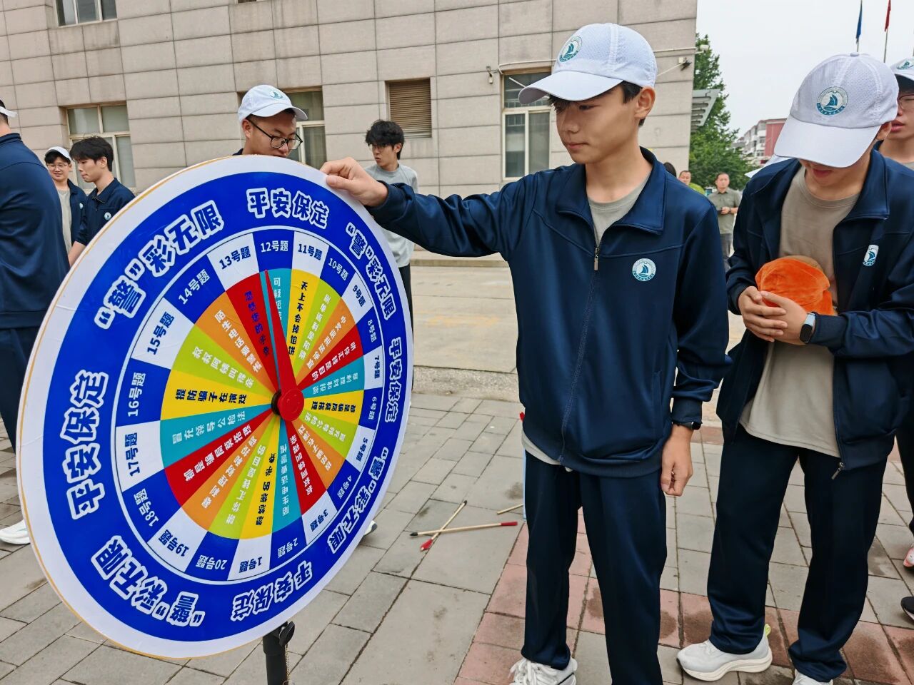 转盘游戏。保定日报记者 霍若雯 张萌 摄 此次活动打破传统宣讲模式,通过沉浸式、趣味性的活动设计,进一步筑牢校园网络安全“防火墙”。活动现场,游戏体验区迅速成为“人气打卡点”,投壶、套圈、大转盘、射箭等趣味游戏吸引大家积极参与。每件游戏道具上,都印有“钓鱼链接要警惕”“刷单返利是陷阱”“警惕陌生来电套取信息”等提示语,帮助学生在欢乐互动间学习网络安全知识。