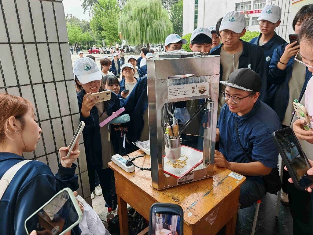 投壶游戏。保定日报记者 霍若雯 张萌 摄 “这块小小的盾牌,代表着我们的个人信息安全不容侵犯!”在糖画3D打印机展台前,工作人员一边操作设备,一边耐心讲解。随着机器运转,融化的糖液缓缓流出,在平台上逐渐勾勒出小巧精致的盾牌造型。同学们一起举起糖画合影,记录下这份甜蜜的安全提醒。