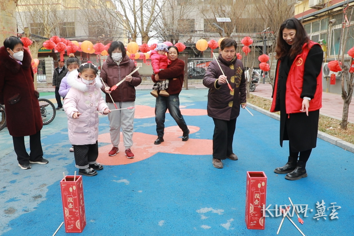 2月27日,保定高碑店市兴华路街道中铁社区与嘉园社区联合举办“我们的节日·元宵节——马跃元宵·邻里同乐”元宵喜乐游园会,辖区居民欢聚一堂,猜灯谜、品元宵、玩投壶,在传统民俗中感受浓浓邻里情。