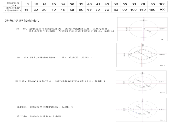 表4.1.1道路红线宽度与切角长度对应关系表