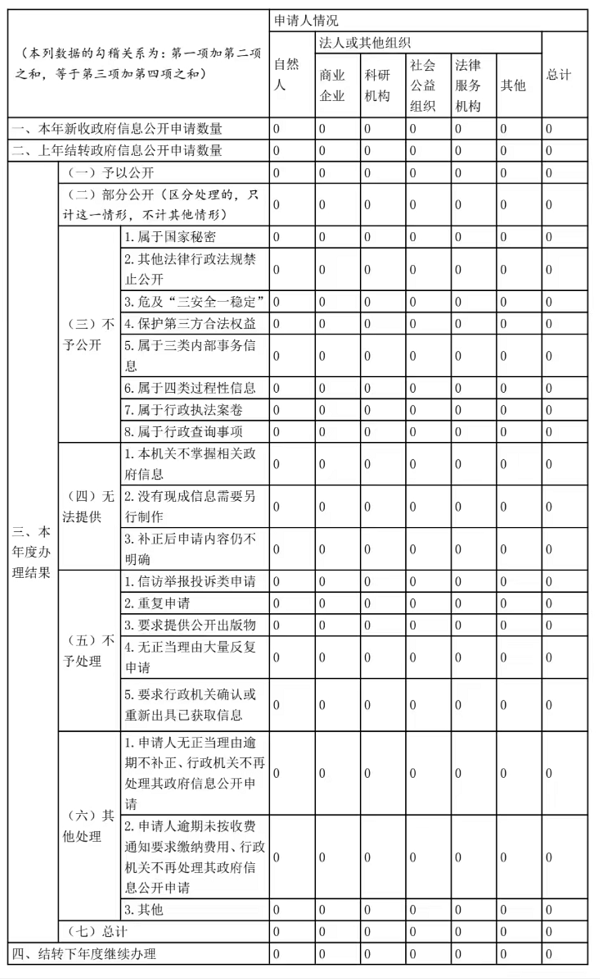 三、收到和处理政府信息公开申请情况